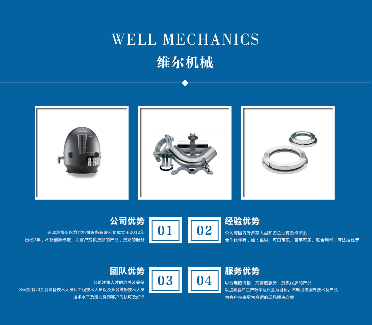 天津濱海新區維爾機械設備有限公司成立于2012年,注冊資金1000萬元。是一家有限責任公司,主要面向大眾群體,從事進出口設備及備件的銷售及售后服務,與國內外多家大型企業有合作關系,如:雀巢、西得樂、可口可樂、百事可樂、聯合利華、阿法拉伐、GEA等。公司成立以來一直秉承現代企業的科學管理方法,注重人才的培養及儲備,現公司擁有20余名設備技術人員和工程技術人員以及多名維修技術人員,技術水平及能力得到客戶的認可及好評!不斷提升企業的競爭力,使企業在發展中樹立起良好的社會形象。憑借良好的水平和成熟的技術。以科學的管理手段,良好的技術力量,將不斷深化改革,創新機制,適應市場,發展。公司客戶及服務內容:亞實動力、機械設備安裝調試;約翰迪爾設備安裝及水電氣安裝;凱諾斯、電裝、設備安裝;GEA公司,飲料無菌生產線整線的設備安裝調試,舊線的大修保養;為GEA液體部提供服務技師,對無菌生產線進行安裝和調試。天津聯合利華工廠...